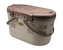 Iris CAL-490-TAN Review: IRIS Pet Carrier for Dog or Cat, Tan. Brilliant Design, incorporating vintage (1950's picnic hamper) look into modern product. Large and roomy -- very big cat would be comfortable. Could put covered ice packs in for hot travel w/out leaking. Sturdy plastic will clean easily w/garden hose. Slits will allow animal to be private and look out but no one can look in. Easy to carry. The locks are inventive and appear to be strong. Small lidded compartment on top is convenient. Very attractive. Will store in car for ... Full reviews at amazon »